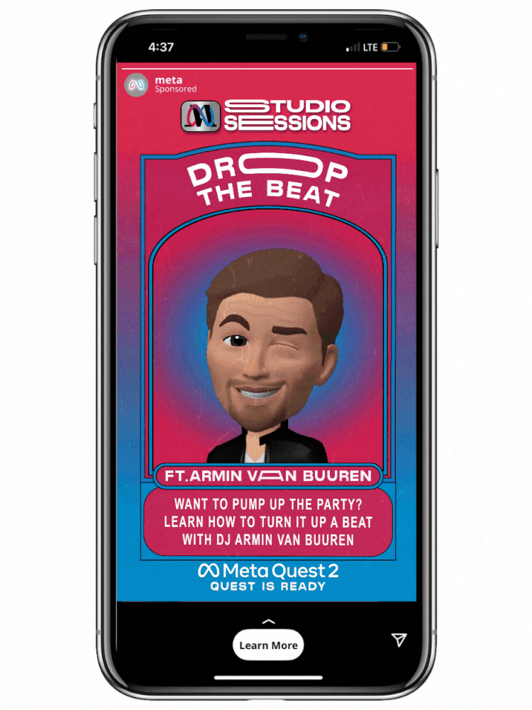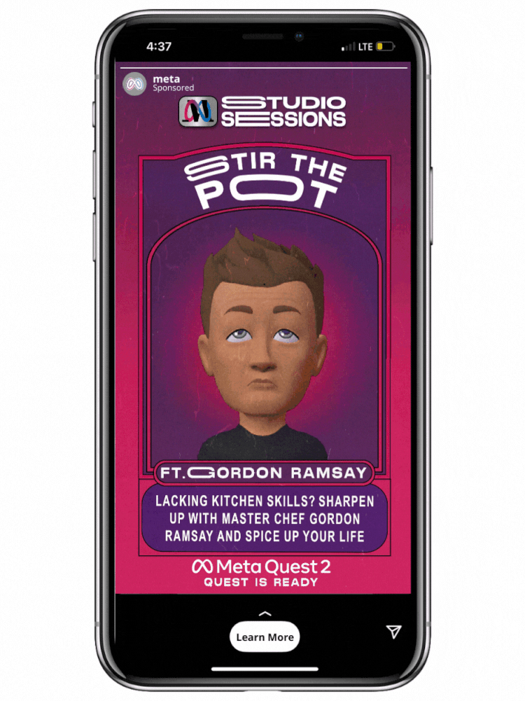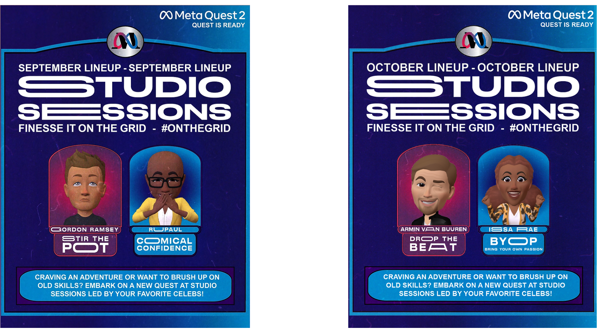 A space *in Meta* where Gen Z can explore new interests without the fear of failure. In collaboration with Masterclass, explore new passions during experiential studio sessions led by world-class celebrities with a new lineup dropping each month.